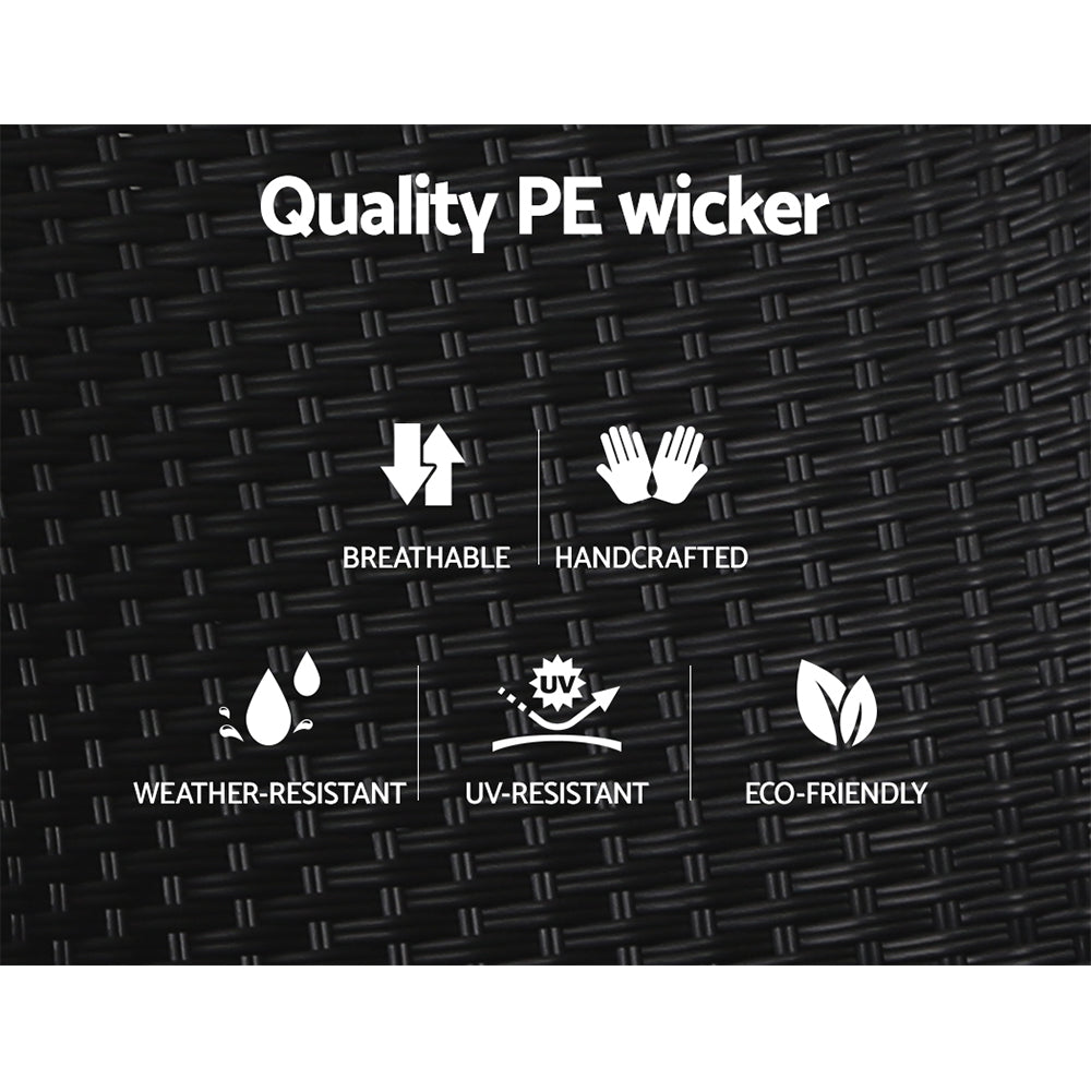 Gardeon 2PC Recliner Chairs Sun lounge Wicker Lounger Outdoor Furniture Adjustable Black
