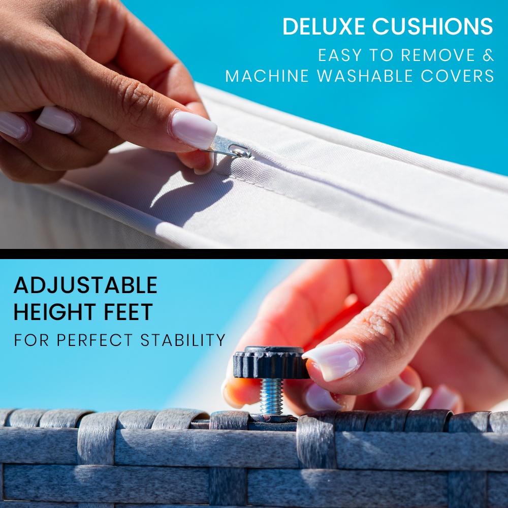 LONDON RATTAN 3PC Outdoor Daybed Patio Rattan Sofa Sun Lounge Furniture Grey Wicker Off White Canopy